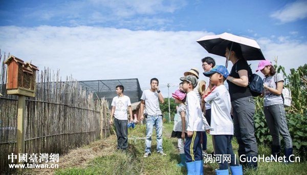 在农庄举行亲子游活动,大家在导览员介绍下,听田园趣味讲解饿科普小知识。(图片来源:四川省台办)