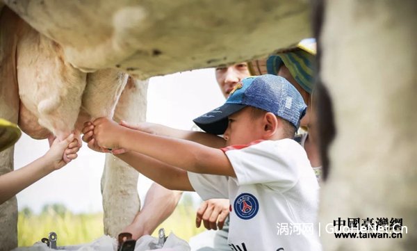家长与孩子一道体验挤牛奶。(图片来源:四川省台办)