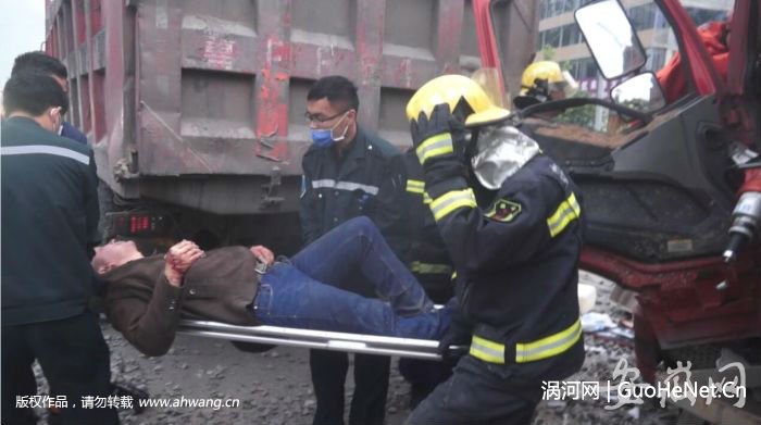 5月2日5点左右,阜阳市阜南县焦陂路口东200米发生三车碰撞事故,一人被困。