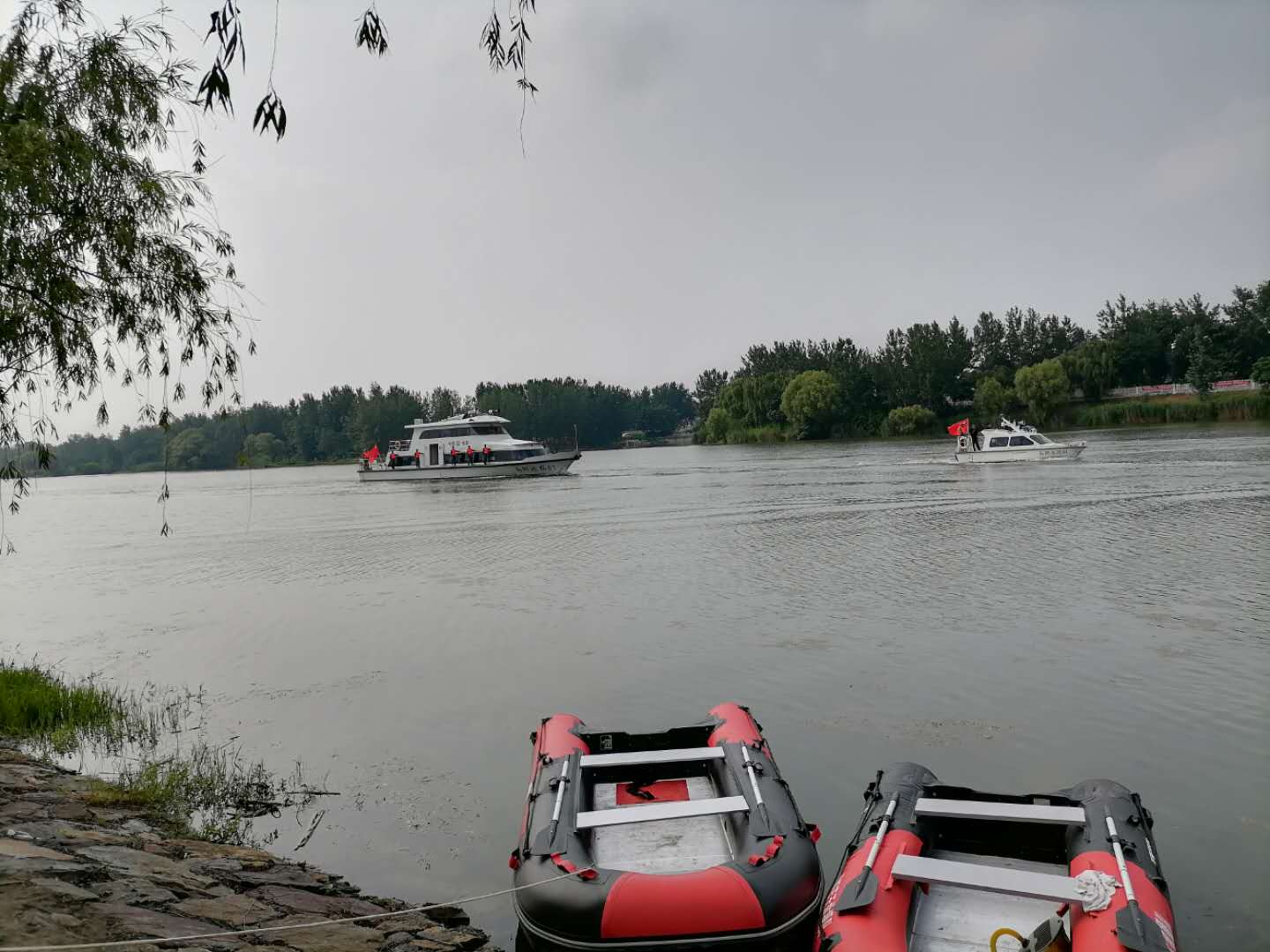 初夏的涡河,入汛雨频,水涨船高,碧浪翻滚。由200多人组成的民兵抢险队,在快艇冲锋舟的导引下,迅速到岸集结,只听指挥长一声令下,涡河两岸,万人攒动,喊声震天,“百舸争流,千帆竞渡,到中流击水”,2020年防汛抢险综合演练在涡河枢纽拉开帷幕。