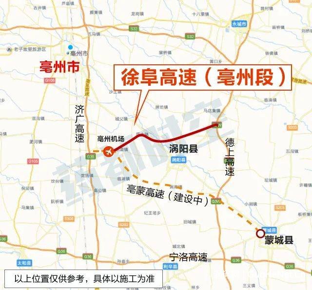 据介绍 徐州至淮北至阜阳高速公路亳州段是《安徽省高速公路网规划(2016-2030年)》中“纵二”(徐州—福州高速公路)联络线(徐州—阜阳高速公路)的重要组成部分,起于涡阳县龙山镇德上高速公路,向西经陈大镇,终于标里镇亳蒙高速公路,新建里程约37Km,总投资估算约43亿元。