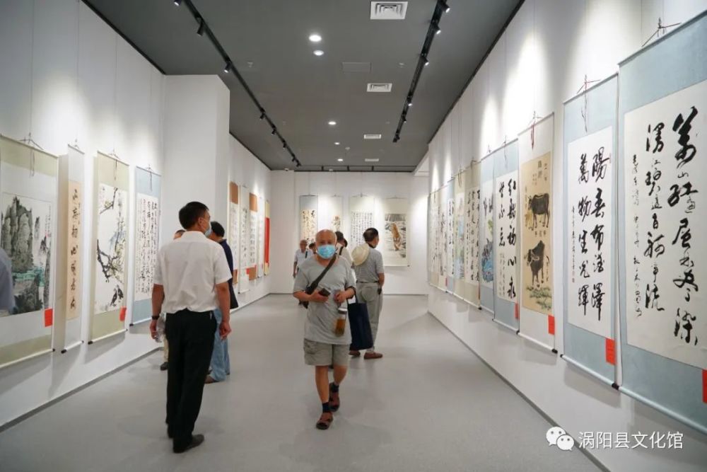 作品形式丰富多彩,其中六尺中堂、四尺立轴,或泼墨,或丹青,歌盛世,颂党恩。作品充分体现了三县老一辈书画家对党、对祖国、对人民的深情厚谊,对“艺术为民”的执着,对中华文化的自信。(涡阳县文化馆 摄影/编辑:朱 瑜 审 核:王亚茹)