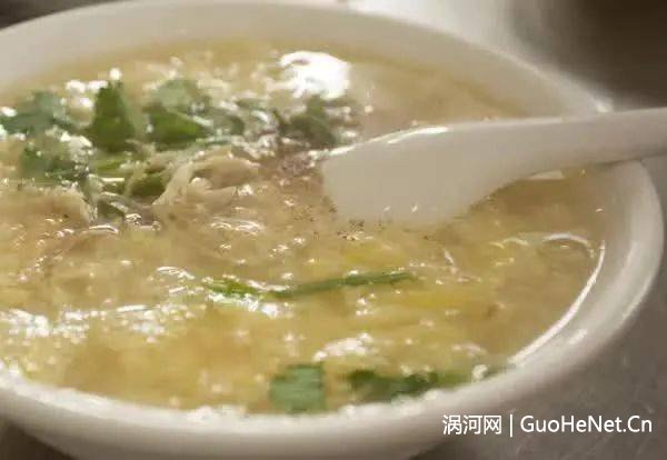 源于清朝乾隆年间。是用老母鸡、猪排等为原料,炖好后,打生鸡蛋在碗里,搅拌均匀用沸腾的肉汤浇沏,制成黄橙的肉汤蛋花茶,并在上面撒上牛肉末、香菜和芝麻油。据传乾隆皇帝下江南时,偶尝此汤,大加赞赏,从此(sa)汤声名远扬。 蒙城油酥烧饼