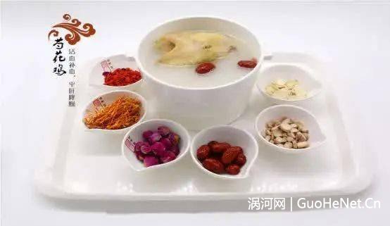 古道芍花鸡选用一年左右的小公鸡,肉质既不发柴,又不松散;同时加入芍药、人参、石斛、大枣、虫草花、枸杞子等药材,经过腌制、焯水、炖煮等工序,使得鸡肉中融入药香,汤中充满鸡肉的鲜味,药借食力,食助药威,两者完美融合。