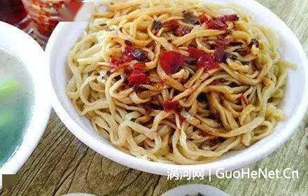 涡阳干扣面,是涡阳的一种独具风味的面食,以煮熟的黄豆芽作铺垫,配以蒜汁、葱花、味精、胡椒、食醋、香油、酱油等为底料,煮熟的面条如雀巢一样覆盖其上,再以油榨辣椒作上料,充分搅拌以后即可食用。 高公糖醋蒜