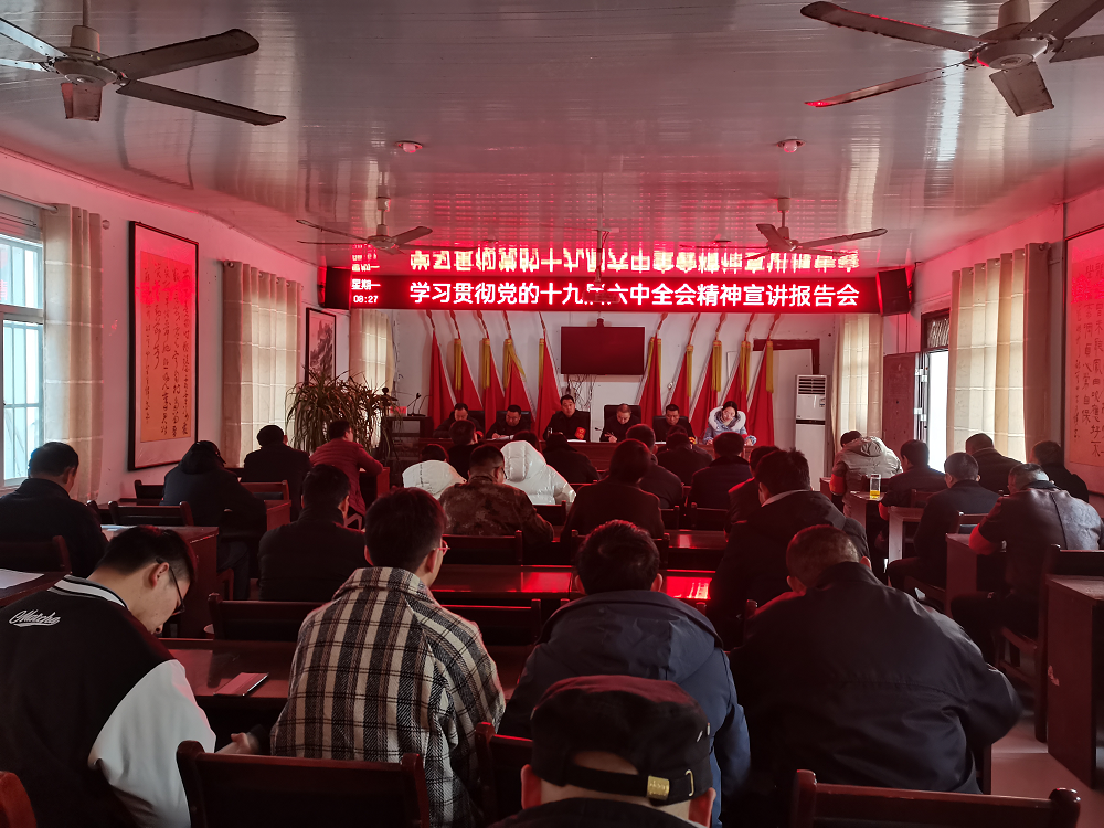 为深入学习贯彻落实党的十九届六中全会精神,按照县委安排,丹城镇积极成立镇宣讲团,镇党委书记裴力同志任宣讲团团长,其他党政班子成员及包村干部组成宣讲团成员。近日,我镇召开了全镇学习贯彻党的十九届六中全会精神宣讲动员会。党政事业全体人员,各村两委成员,及村民代表参加了动员会。动员会上镇主要领导对宣讲工作作了强调安排。镇党委书记裴力作了首场宣讲。