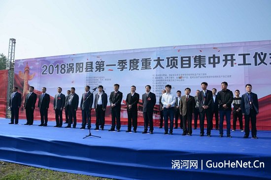 4月24日,涡阳县举行2018年第一季度重点项目集中开工奠基仪式,18个重大项目集中开工,近110亿资金将投入涡阳,为涡阳经济发展再添活力。