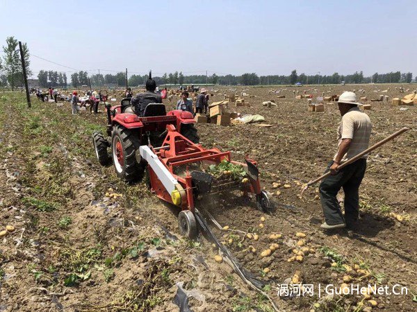 据了解,这片地里总共种植了300余亩的土豆,每逢土豆成熟时,总会招一些人前来帮忙,每天都给发工资。“我们这是扶贫产业基地,有十几个贫困户,但是人数还不够,最多的时候一天用工人数达80人,小麦刚刚入仓,农民此时也比较清闲,我们就招附近人来帮忙,一人一天给60块钱。”基地负责人为我们介绍道。