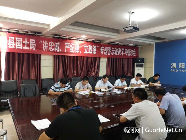 7月24日下午,涡阳县国土资源局召开党组理论学习中心组学习(扩大)会议,开展“讲忠诚、严纪律、立政德”专题警示教育学习研讨。局党组书记、局长苏廷全同志主持会议并作总结讲话,局领导班子各成员,各股室、二级机构主要负责人,局机关党委各委员、各党支部书记参加了会议。