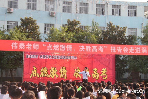 9月3日下午3:50,涡阳四中邀请全国著名演讲家、伟泰教育演讲团首席讲师荆伟泰老师在运动场为高三全体师生作了“点燃激情,决胜高考”的励志报告会。