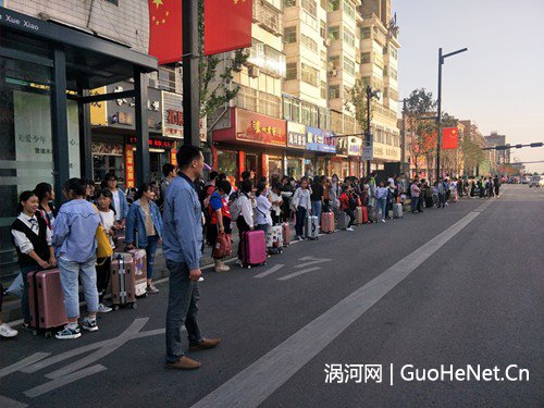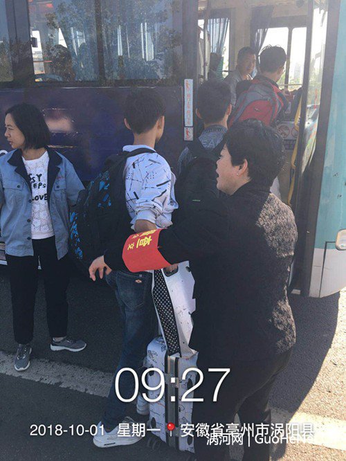 涡阳公交党支部书记国庆期间带队,现场维持学生有秩序乘车