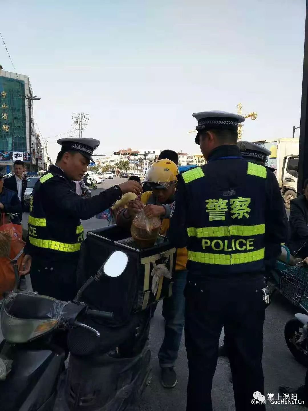 交警同志亲自帮外卖小哥 把没有送完的外卖送到了客户的手中 我觉得应该给警察蜀黍点赞 |