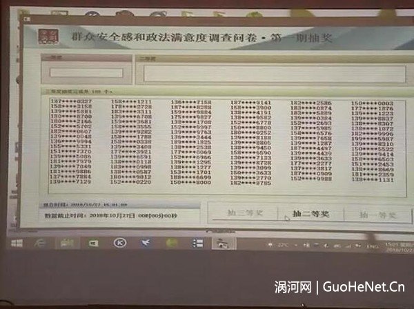 据了解,此次抽奖对象为参加安全感满意度、网上答题的手机号码,数据截止至2018年10月27日凌晨,经县公证处人员的现场监督下, 共抽出一等奖1名,品牌电动车一辆,价值3000元。二等奖10名,品牌电饭锅一个,价值300元。三等奖100名,品牌雨伞一把,价值30元。