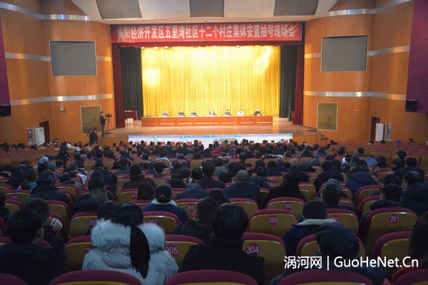 2019年1月8日,在新春佳节即将来临之际,涡阳开发区在大剧院召开了五里湾社区第三批潘庄、陈庄、王庄3个自然村安置抽房大会,会议由开发区党工委书记郅玉洁主持,县委常委、开发区管委会主任牛光出席会议并致辞,开发区部分班子成员、纪工委,涡阳公证处,市县人大代表、政协委员代表,各工作组全体成员、五里湾社区“两委”成员和333户群众参加了大会。