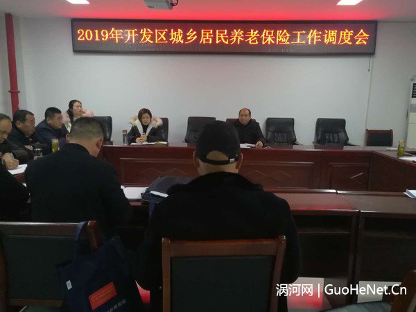 2019年2月2日上午九点,涡阳经济开发区召开2019年城乡居民养老保险征缴工作调度会,经济开发区党工委委员、社会事务局负责人张毅书记主持会议,各社区负责人和社保专干、社保所全体人员参加会议。会上由分管社保负责人陈曼丽同志宣读开发区养老保险实施方案,社保所王丽丽同志讲解养老保险具体征缴措施,针对问题做出解答。