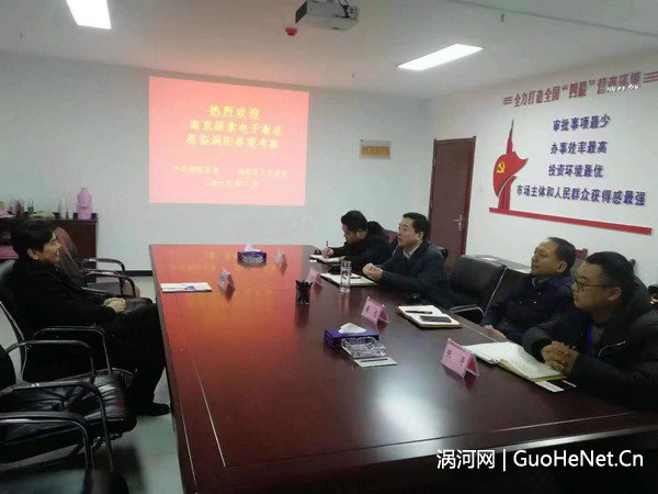 2月19日,南京绿索电子科技有限公司谢总来涡考察,县招商局负责人李仓玉热情接待了谢总一行并在六楼会议室进行座谈,县招商局副局长陈敬之、副局长栗志、开发区招商局局长张涛参加座谈。