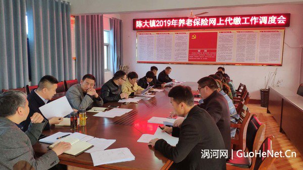 3月28日,陈大镇在二楼会议室召开2019年养老保险网上代缴工作调度会,镇社保所、农商行、15个村级代办员参加会议,会议由镇社保所所长主持。