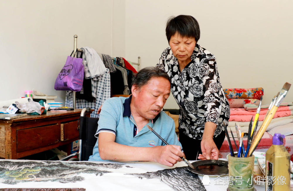 李勋每天坚持画画,十几年从来不间断,就是靠着这种毅力和精神让社会各界人士感动佩服。(涡小胖)