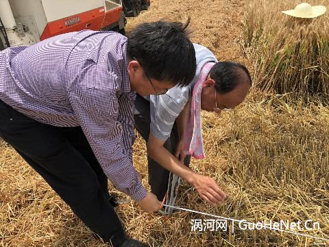 (现场测量地块) 当日上午,在安徽省农业科学院的组织下,来自省农业农村厅、安徽农业大学、省种子管理站、省农垦事业局、亳州市农业技术推广中心等单位的专家组成的专家组,在示范区中随机收获3.47亩小麦,现场称重、除去杂质,折去籽粒标准含水量13.0%后,亩产815.6公斤,刷新了亳州小麦最高单产纪录。
