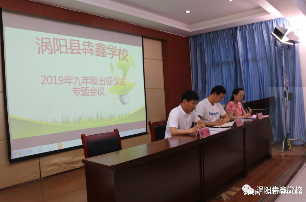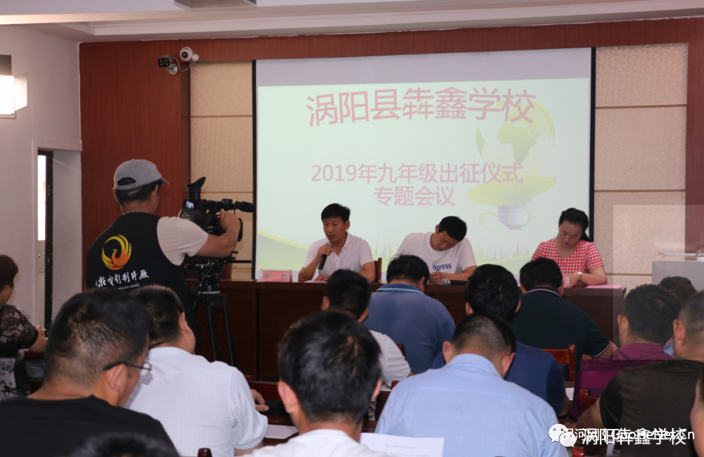 6月12日周三下午涡阳县犇鑫学校召开了2019届九年级中考出征仪式专题会议,出席会议的有全体教师和学校领导骨干,会议着重强调了即将来临的中考事宜,紧密部署了14日中考送考活动。