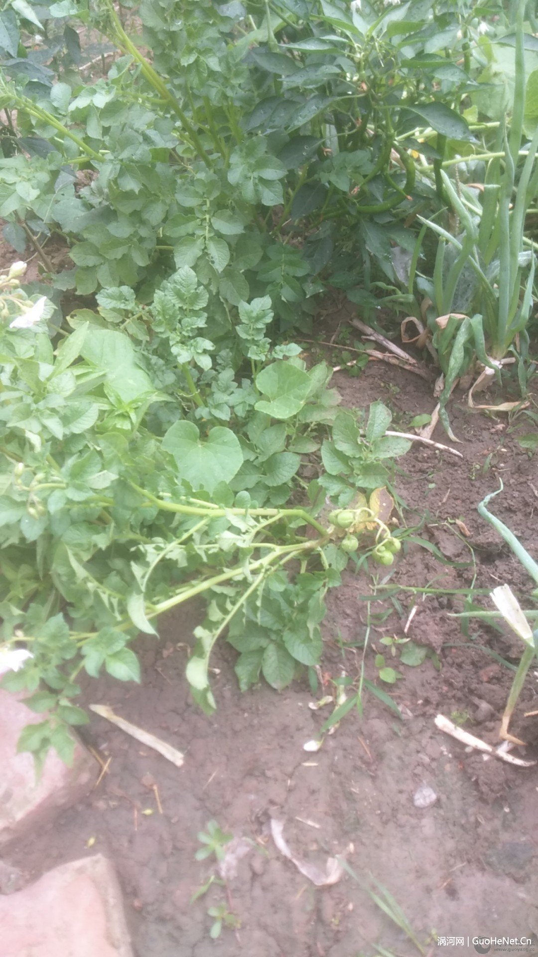 今天一位地址在单集林场王金寨微友“萍水相逢”爆料,称自家种的土豆秧子上竟然长了番茄。一颗秧苗,上面结着西红柿,下面长着马铃薯,是该叫它西红柿呢还是叫它马铃薯?这事可真是够神奇的。