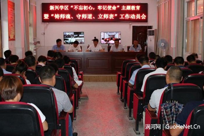6月20日上午,涡阳县新兴中心校召开“不忘初心、牢记使命”暨“铸师魂、守师道、立师表”主题教育动员会,新兴学区中小学(园)校(园)长参加了会议。