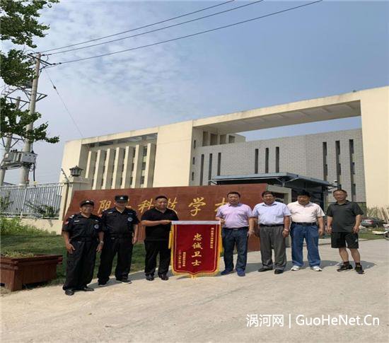 为深入落实安全保卫联动机制,提升学校安保工作的水平,近日,安徽省涡阳县科技学校校长杨文生,为了感谢安徽天成保安服务公司安保人员亲自赠送锦旗,上面写着忠诚卫士四个黄金大字为表感谢。