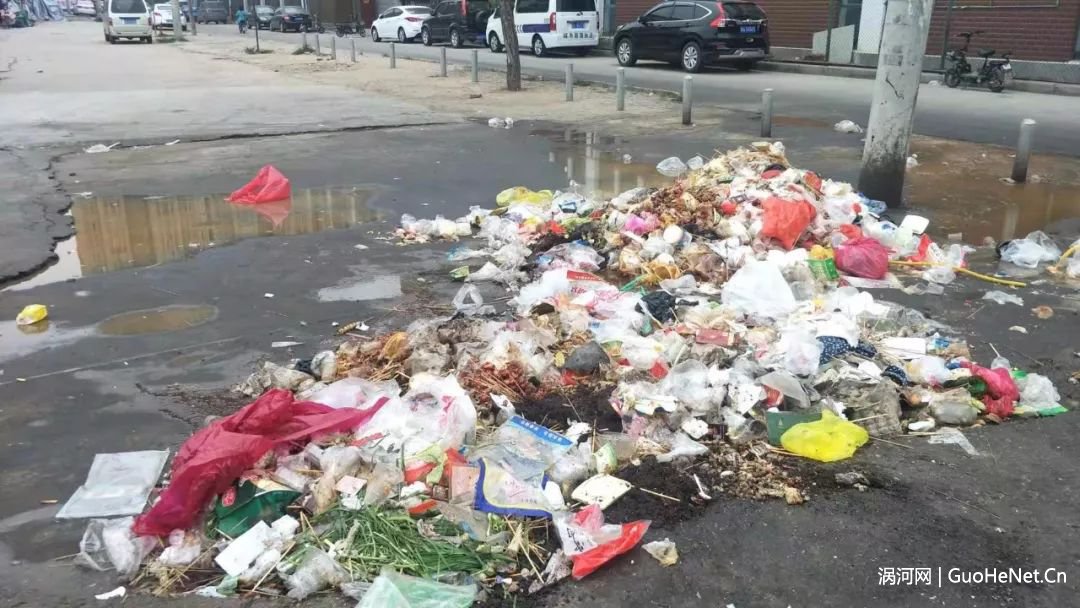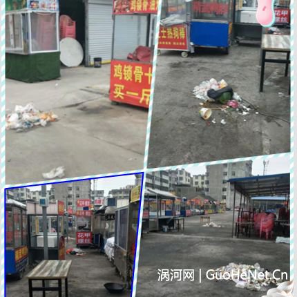 这里就是涡阳时代广场西侧的美食城 这是今天8点30分小编在此拍到的画面 一堆又一堆的垃圾 装点着美食城的“风景” 走在这里 你一定要小心脚下 注意别被这些垃圾绊倒