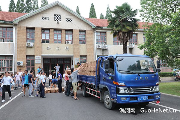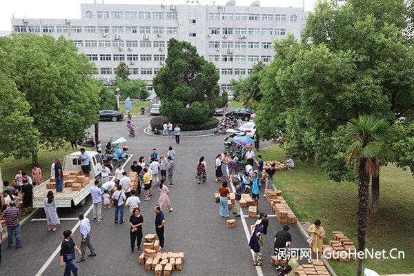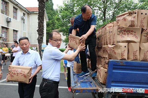 7月18日上午,安徽科技学院工会在凤阳校区中办公楼前向全体工会会员发放鲜桃。本次发放的鲜桃是从安徽科技学院定点扶贫村涡阳县王桥村伟侠果蔬专业合作社集中采购的一批夏甜桃、白如玉桃,共1万余斤。