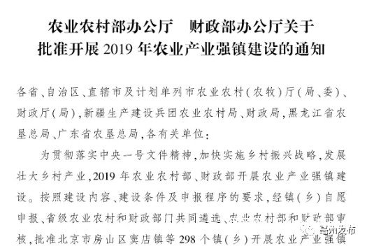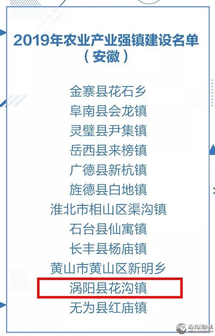 7月24日,农业农村部发布《农业农村部办公厅 财政部办公厅关于批准开展2019年农业产业强镇建设的通知》。根据通知,2019年农业农村部、财政部批准298个镇(乡)开展农业产业强镇建设。其中,安徽省有12个乡镇上榜,我市涡阳县花沟镇名列其中。