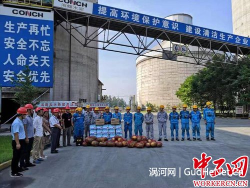 县总工会一行先后慰问海螺水泥、正宇面粉等四个企业,为一线职工送去毛巾、花露水、矿泉水、西瓜等防暑降温用品,对奋战在一线的职工表示亲切慰问,希望一线职工在工作时保护好自己的安全健康;叮嘱企业避开高温时段生产,调整作业时间,采取降温、通风措施,改善工人工作环境,提供清凉用品等。