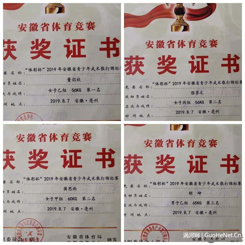 毫州市代表队团体总分第二名获历史最佳成绩,锦绣学员来自涡阳县二中、三中、六中、五中,职教办和市第18中学,他们白天上文化课,晚上利用课余时间努力训练。在和全省市体校、武术馆校交流比赛中敢于拼搏,赛出了水平 。