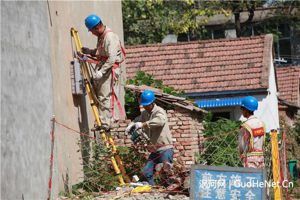 2019年9月25日,电力工程施工人员正按照新一轮农网改造升级规划建设要求对安徽省涡阳县牌坊镇曾庄村高低压线路及到户电表箱进行全面改造。