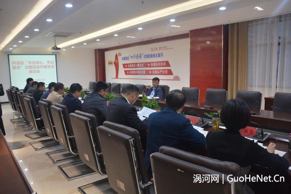 2019年10月17日,县委书记胡明文同志在开发区综合服务中心4楼会议室召开涡阳开发区“不忘初心、牢记使命”主题教育座谈会,县委常委、开发区管委会主任丰霄寒、开发区党工委书记郅玉洁、开发区党政班子成员参加会议。 会上,郅玉洁同志汇报了开发区主题教育开展情况,认真剖析了当前工作中存在的不足和问题,表示将坚持以上率下,创新主体教育形式,把学习教育、调查研究、检视问题、整改落实四项重点措施贯通起来,确保主题教育取得实效。