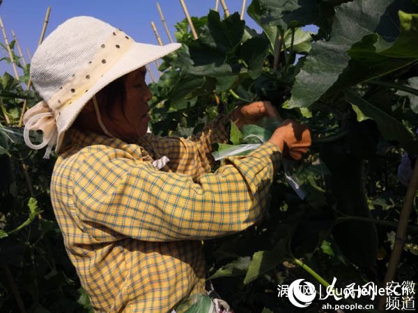 “已经摘下了两茬瓜,还能再收三茬,可以卖到中秋节。”8月2日16时许,地表温度超过了40度,利辛县王市镇高寨村的贫困户沉如友已在西瓜大棚内忙碌了起来。