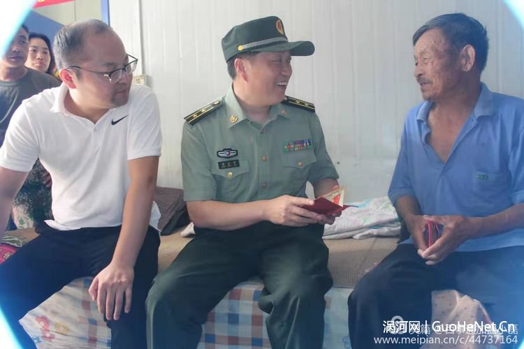 永兴镇庞镇长及武装部部长陪同下进入老兵家慰问带去慰问金,和大米粮油