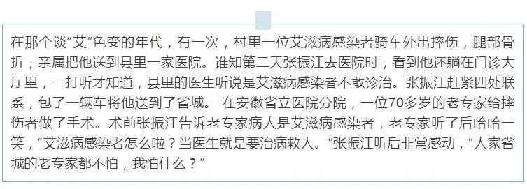 1995年,刘染村发现了第一个艾滋病感染者,村医张振江从此便成为了村里的防艾专职医生。几千个日日夜夜里,他一直悉心照顾着村里的艾滋病感染者和患者。 刚接触艾滋病感染者那会儿,张振江心里也打鼓,怕被传染,怕被乡亲们说三道四。但随着接触的增多,张振江发现之前的顾虑都是多余的。只要防护得当,就不会被感染。