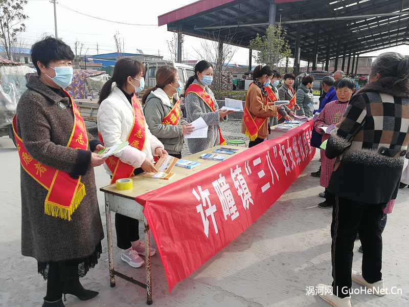 3月5日上午,许疃镇晴空万里、生机盎然,为推进妇女法治宣传教育、增强女性法律意识、提高维权能力,在三八妇女节来临之际,许疃镇志愿者在该镇农贸市场举行“三八”国际妇女节法律宣传活动。