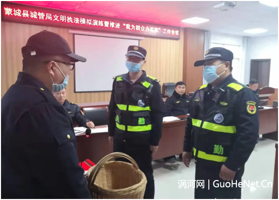 “老人家,我是蒙城县城管局行政执法大队四中队十分队队长代强,这是执法证件。您在车多人多的街道拐角售卖水果,不仅堵塞交通影响市民安全同行,存在一定安全隐患,也影响您和购买水果的市民人身安全,请您到附近临时疏导点摆摊售卖,请您予以配合。”日前,上述场景在蒙城县城管局三楼会议室上演,这是该局党组旨在执法管理更好服务社会和群众,推深做实“我为群众办实事”而举办的一堂生动的文明执法模拟演练活动。