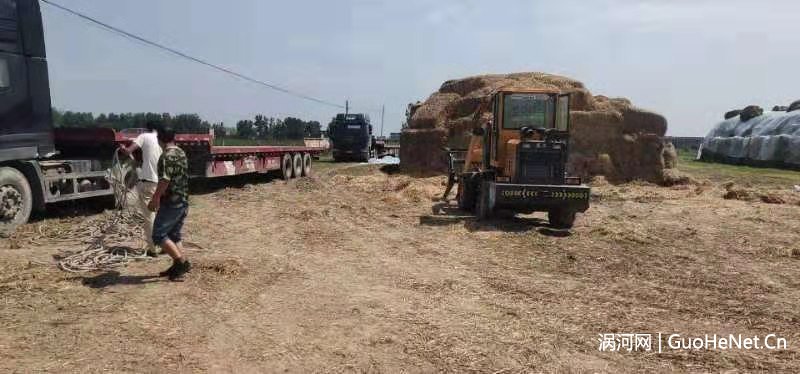 7月3日下午,在安徽省蒙城县立仓镇杨庄村和陆瓦房村两个秸秆堆放场将打捆的秸秆集中堆放车上,准备发往电厂。