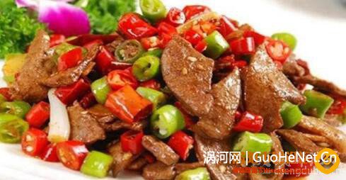 猪肝、姜、葱、蒜、尖椒、红辣椒、料酒、淀粉、酱油、盐和食用油