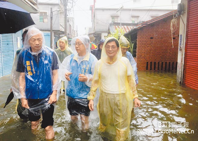 暴雨重创南台湾,嘉义县东石乡掌潭村淹水严重。(图片来源:台湾《中时电子报》) 8月29日讯 823水灾一路从屏东、高雄淹到台南、嘉义,面对水灾,台湾地区领导人蔡英文乘装甲车勘灾不忘微笑向受灾群众挥手致意;“行政院长”赖清德呛批评治水破功的人“去当上帝”;“内政部长”徐国勇放话治水像感冒,没有药让人永远不感冒。随后又曝出蔡英文副手陈建仁带着全家人到金门度假、“立法院长”苏嘉带家人赴日本的消息。正如台媒所指,在一连串高官失言、失态事件传出下,民进党当局已经声望扫地,一场水患不只显现出当局未能苦民所苦的心态,也淹出民进党把南台湾支持者吃够够的嘴脸。 据台湾《中国时报》报道,陈建仁在南台湾大淹水的第二天就带家人到金门度假3天2夜,虽然在人多的景点特意戴上口罩,但仍在翟山坑道遭眼尖陆客团认出并要求合照。据了解,陈建仁相当错愕,随扈也吓了一大跳,赶忙阻挡。