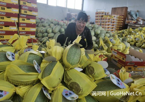 “在这里干活,一天有100多元收入,不仅挣了生活费,还不耽误照看家里,感觉挺好的。”田凤包装着哈密瓜开心道。
