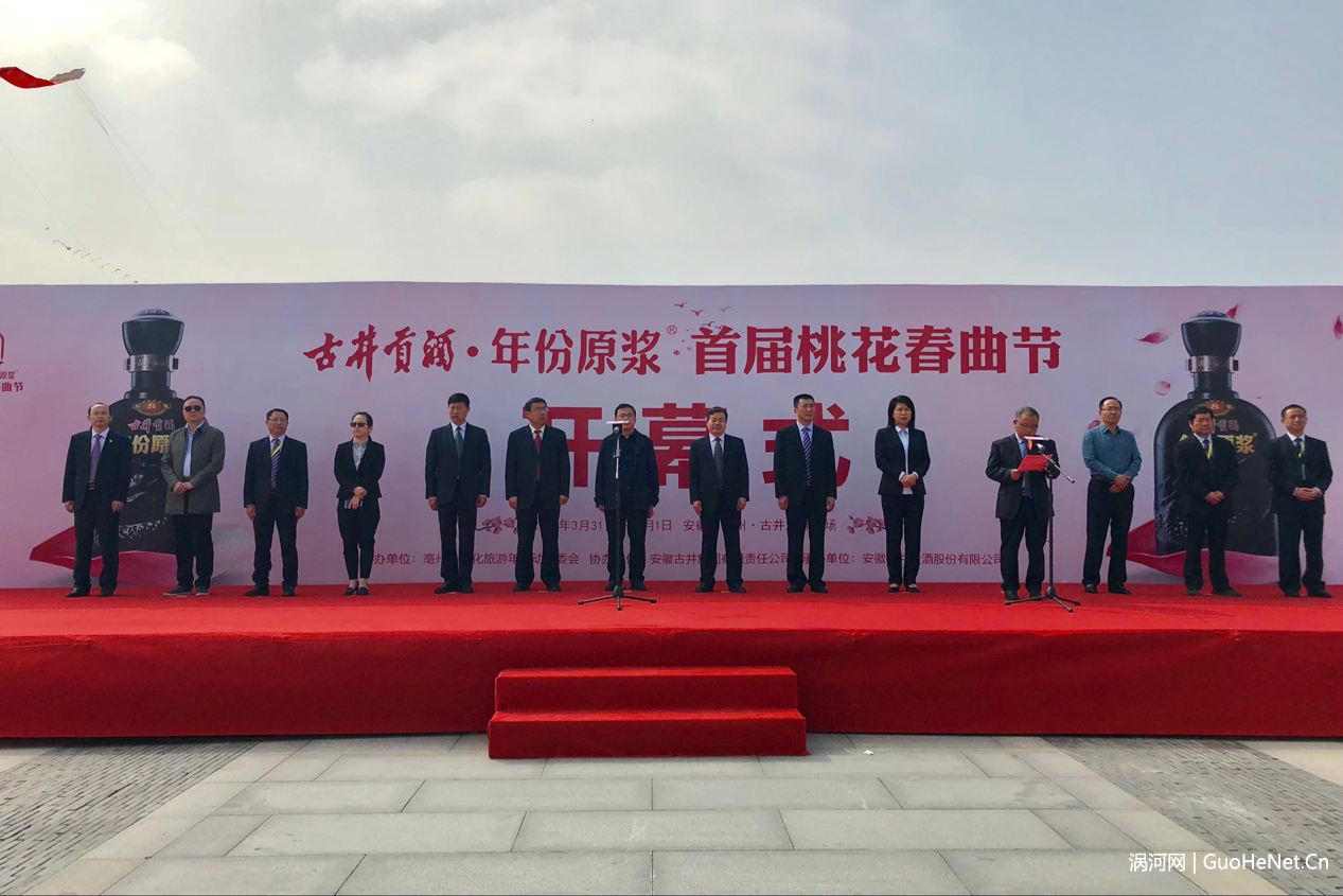 3月31日,由亳州市文化旅游局主办,安徽古井集团有限责任公司协办的“古井贡酒·年份原浆首届桃花春曲节”在亳州古井酒神广场开幕。