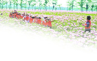 5月3日,游人在亳州市谯城区十八里镇白芍种植基地赏花游玩。本报通讯员 刘勤利 戴明 摄