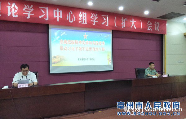会议传达学习了习近平总书记在纪念马克思诞辰200周年大会上的重要讲话精神;市委常委、亳州军分区司令员张年进作了题为《准确把握精神实质和实践要求推动习近平强军思想落地生根》的专题辅导报告。