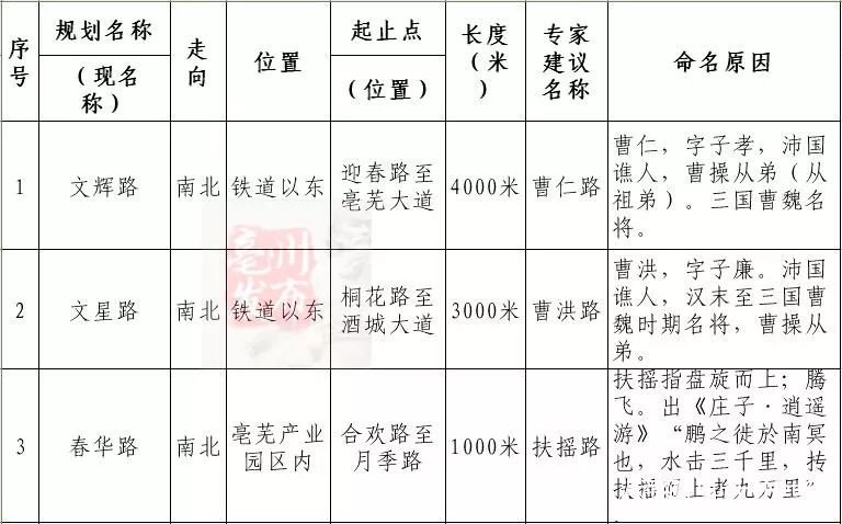亳州市第五批城区道路(支路、街巷)命名征求意见的公告