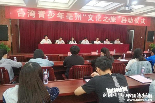台湾青少年亳州“文化之旅”启动仪式。(图片来源:亳州市台办) 7月15至21日,在台湾中华两岸高校文化交流协会会长杨丽源、执行长苏清足的带领下,来自宝岛台湾的16名青少年学生到安徽省亳州市开启了为期一周的“文化之旅”。亳州市委常委、市委组织部长、统战部长秦凤玉会见交流团一行。