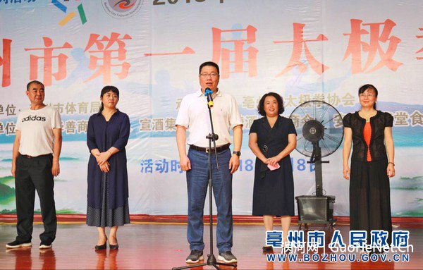 今年8月8日,我国迎来第十个全民健身日。昨天上午,亳州市第一届太极拳比赛正式开赛,拉开了我市全民健身日的帷幕。市政协主席汤涌参加开幕式并宣布比赛开始。