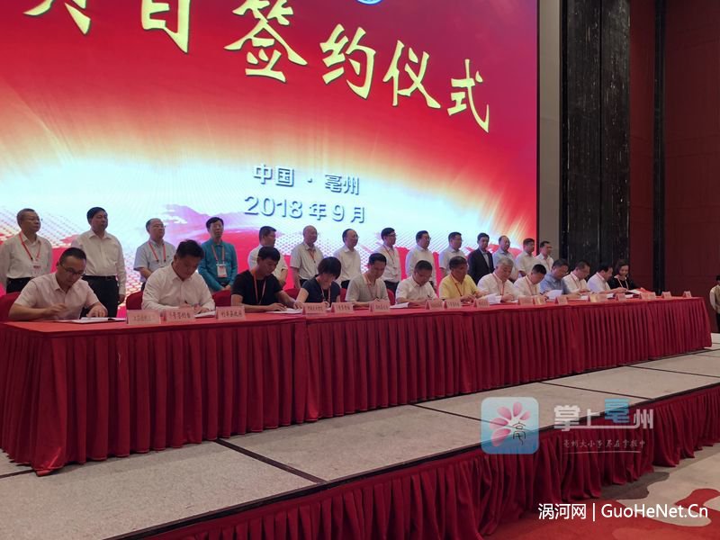今天(9月8日)下午,2017年度中华民族医药百强品牌企业榜单发布会暨2018年中国(亳州)投资环境说明会、项目签约仪式举行,会议邀请全国20多个省、市、自治区以及香港、台湾地区的300余家企业参会。会上集中签约了一批重点招商引资项目,共签约59个合作项目,项目总投资518.2亿元,其中工业项目52个,签约金额393.4亿元。(掌上亳州记者 周路 陈阳硕 王涵 邵泽明 编辑 彭鹏 编审 张薛 王小草)